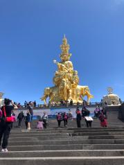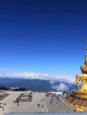 峨眉山好大,半山腰都是雾气,爬到顶得花好几个小时,登顶景色特别美,很纯净的感觉,山上很冷,太阳光很强,穿多衣服做好防晒,山上风景很好,值得一去!坐车上山很久,缆车排队很久。