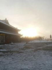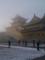 中午到达峨眉火车站,在明升萝卜汤吃了特色,萝卜汤35元,泡菜10元,卤肉20,芽菜炒肉丝35,个人感觉味道一般。随后包车去零公里处,160元约45分钟,下车后在旁边小卖部买了些零食,超贵且无标价,2元的火腿卖5元,4元的饮料卖8元。步行200米后到入口,峨眉山门票185,零公里处到雷洞坪往返大巴50,下午入住雷洞坪,这儿的酒店有十几家,我住的金川,三楼(有地下室,所以三楼就是地上的二楼),标间,220。29日凌晨5点起床,步行到接引殿约2公里,坐缆车到金顶,单程65,金顶很冷很冷很冷,冰雪世界。有幸看到科日出,四周云海滚动,雾水弥漫,之后步行下山,有40分钟的路程台阶覆盖冰雪。10点回到宾馆补