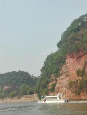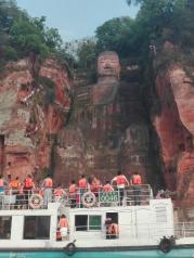 来乐山必定要去看乐山大佛。乐山大佛已经有1000多年的历史了。我这次是周末来的,下午五点,都还是排队进景点。六点半就关门了啊!因为比较晚我就选择的坐船,坐的是快艇。快艇和游船的售票点不一样,要注意区分。感觉还不错。快艇70块一个人。