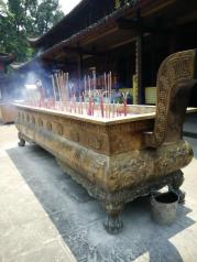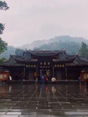 下山后游览的景点,峨眉山报国寺的寺院很大,香火鼎盛,可以在寺院门口看到云游的僧人。园中鲜花绽放,在细雨中清香阵阵。可以在寺内法物流通处请平安回家。去峨眉山,一定不要错过报国寺,千百年来峨眉山开山第一寺,皇家寺院,门票8元,有不少佛教导游讲解,帮你了解佛教知识。