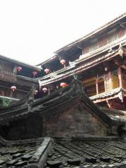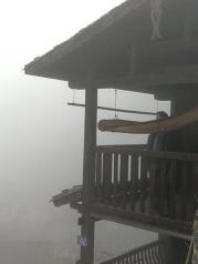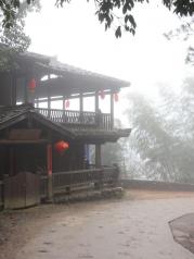 丁屋岭,一个寨门,一个无蚊叮咬的丁氏村落,一座宗祠和对面戏台,有一条不长的,叫牛气街的巷道和一个不高的了望吊脚木屋,这个可以拍戏也可以入戏的地方,有一种心情,含着雾气和樟本香,清新凉爽,纯朴无穷。