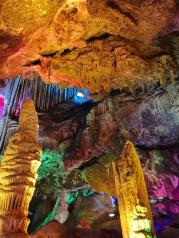 鸡冠洞跟朋友一起去的,真的太好看了,不过去的朋友一定要穿防滑的鞋,里面有点湿滑,一定要小心哦,整体是先下后上,特别壮观,灯光也很好,岩石非常美丽,而且我觉得适合跟朋友一起去,真的太好看,下次去栾川还要去。