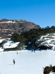 轿子雪山最高处自己松拓手表测得大概4200多,可以看到海拔不同的各种地貌。下面说一下注意事项:因为雪山嘛,当然是要冬天去爬了,昼夜温差相当大,早上起来车子表面都结冰了;一定要戴墨镜,如果近视眼也请配变色镜片,裸眼你是受不了的,女友没戴墨镜回家后流了好几天眼泪,真的会瞎;做好防嗮,在高山雪线以上紫外线真的很强很强;平原过来的朋友请购买氧气并量力而行。