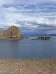 当惹雍措又称当热错、唐古拉攸穆错,位于藏北文部二村、象雄王国遗址旁边,海拔4530米,是西藏著名的圣湖之一,也是苯教最重要的神湖。此处人迹罕至,湖水明净清澈,美不胜收。 当惹雍错湖面形似一金刚杵,上圆中细下部长,四面群山环抱,南面的达果雪山山顶积雪终年不化。因为易守难攻的地势和良好的气候,这里曾是象雄王朝的王宫所在地,是迄今藏北象雄遗迹最集中的地区之一,是解读象雄文化之谜的一把钥匙和研究苯教文化的重要场所。
