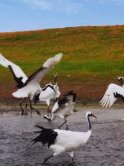 一提到扎龙自然保护区,应该首先想到的就是珍贵的动物丹顶鹤,我们去的时候还有很多,而且非常的和谐,看到他们在这里也是非常的开心,在天上飞来飞去非常的悠闲。
