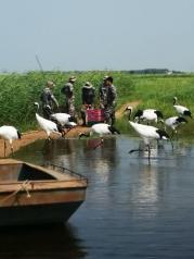 要想赶上扎龙保护区早晨第一波丹顶鹤的放飞得看运气,因为人如果多到门口做景区电瓶车坐到步行道,如果坐不上电瓶船,就需要跑步二公里,挺累的。感觉丹顶鹤在扎龙生活的很好,还是值得来感受一下人与自然的和谐。