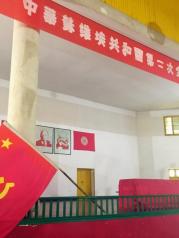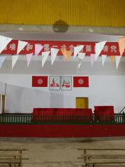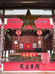4月去叶坪红色旅游景区游玩,这里原来是谢氏宗祠,房子距现在已经有将近400年的历史,为支持红军,当地老百姓自愿的把房子让给临时中央政府,作为第一次苏维埃代表大会会址,当时把供奉祖先牌位的地方设为主席台,正中挂着一面红旗,旗上缝着一颗黄五角星和斧头镰刀图案,旗右侧是马克思像,左侧为列宁像。台中央下方红色横幅上写着“工农炮垒”、“民主专政”,主席台两侧贴着一幅对联,上联是“学习过去苏维埃运动的经验”,下联是“建立布尔塞维克的群众工作”,主席台上方悬挂横幅标语是“全世界无产阶级联合起来。”
