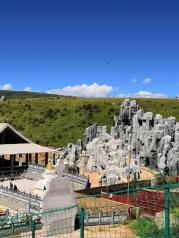 色达天葬台爬上山坡,有一大块平坦的草地,草地中间有一小块方圆几百米的寸草不生之地,堆着些大大小小的乱石,乱石旁砌着一座石塔,石塔四周堆着一圈石墙——这就是从古印度起就被称为“尸陀林”的天葬之地。 每天下午13点以后会有天葬,因为对逝者的尊重,施行天葬的区域被圈起来,除了家属和天葬台工作人员可以进入,其他游客都不能随意进入。