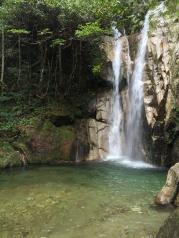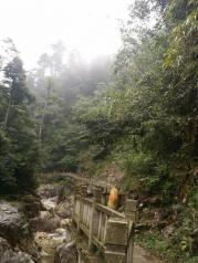 出了六祖殿,介乎于九龙泉之间的那一小段路,以前是灵气逼人的.再暑热的天气,一旦站于此处,遍体生凉,暑气全消.数株直立的古水松,我是从小看到大.但游人日多,喧闹不已,灵气也不太明显了.
