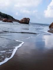 去嵊泗自驾游如果住在基湖沙滩边的民宿或酒店可以向老板索要基湖沙滩优惠券,日场票能便宜10元,沙滩本身比较普通,沙子还算细腻,有免费的冲脚的地方,但是租用更衣箱和冲热水澡需要再收费,而且2岁大的小孩也要买洗澡票20元,由绳子围起来的游泳区域非常浅,只能勉强游一下,再深点的地方救生员就不让游客游出去了,水质偏黄。日场门票60元偏贵。