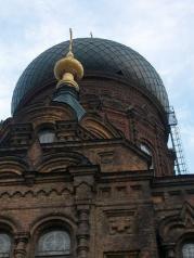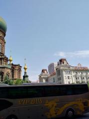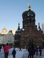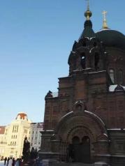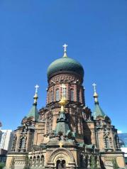 始建于1907年的圣索菲亚大教堂,它是哈尔滨的地标性建筑,那绿色的洋葱头式大穹顶十分引人注目,作为哈尔滨最漂亮的异域风格建筑,吸引着众多游客慕名前来,当然也包括我们。教堂的墙体采用清水红砖,与其说是教堂其实个人觉的这里更像一个历史博物馆,通过展示近千幅图片,但如果不是专业人士,就没必要进去了,在外面看看就可以了。