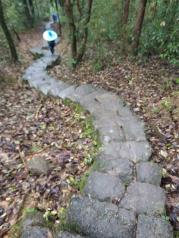 武夷山真的很美,上山途中拍一张,那天非常闷热,本来预报有雨的,爬山喘不过气,忘记拍山路了,可能因为上下都是自己的同伴的脚和头.很多人在岩石上嵌了钱币,大概是祈福的吧.