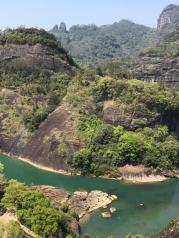 我们一行4人自驾到达目的地_武夷山风景区,九曲溪九道弯,溪水清澈,树木茂盛,气候凉爽。然而,船工无语,导游不上排,9.8公里溪水清山看不出什么景致。天游峰上下近3千个台阶,上山800个,山势陡峭,硬件设施很差,大家注意安全。