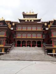 拉卜楞寺,位于甘肃省甘南藏族自治州夏河县,藏语全称为:“噶丹夏珠达尔吉扎西益苏奇具琅”,意思为具喜讲修兴吉祥右旋寺。简称扎西奇寺,一般称为拉卜楞寺。拉卜楞寺是藏语“拉章”的变音,意思为活佛大师的府邸。是藏传佛教格鲁派六大寺院之一,被世界誉为“世界藏学府”。鼎盛时期,僧侣达到4000余人,1980年对外开放旅游。[1] 寺主是第六世嘉木样呼图克图,其他领导人包括八大堪布、四大赛赤。拉卜楞寺在历史上号称有108属寺(其实要远大于此数),是甘南地区的政教中心,拉卜楞寺保留有全国最好的藏传佛教教学体系。1982年,被列入全国重点文物保护单位。整个寺庙现存最古老也是唯一的第一世嘉木样活佛时期所建的佛殿