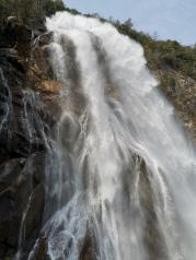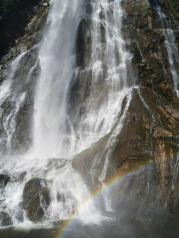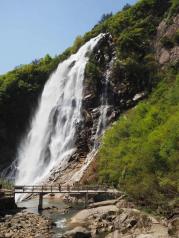 大别山彩虹瀑布距岳西县和霍山县均为34公里,猴河穿过景区形成峡谷,黄尾河与猴河在景区内交汇,河中有许多小岛,组成了数千米的山水画廊。最大的看点彩虹瀑布高80米,宽25米,瀑布倾泻入潭水,积起的水花形成薄薄的水雾,气势磅礴,运气好碰上阳光明媚的日子,就能看见瀑布前的彩虹。