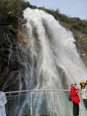 大别山彩虹瀑布虽然去的不是时节,么有看到彩虹,但是不后悔,很壮观,带着宝宝去看的,宝宝很是喜欢呢!今天下雨的,没有爬山,沿着小环线走了一圈,颇有感脚,瀑布落下的那种气势磅礴让人很敬佩大自然