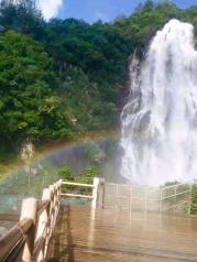大别山彩虹瀑布景色很美,空气清新,还有漂流,水上冲关,攀崖溜索,高空栈道等项目。适合老幼旅游,天要是晴的话,在很多地方都可以看到彩虹,孩子很激动,值得一去