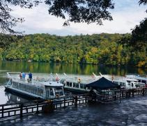 到达三角龙湾进到景区可以选择乘电瓶车到达湖边,也可以选择林间栈道下到湖边,建议走栈道。到湖边后,一定要登山到达通天亭,才能看到三角龙湾的全貌。然后原路返回到湖边,乘船游湖,湖心岛短暂停留,一般会在对岸下船,游览旱龙湾,最后回到三角龙湾的入口停车场。整个景区不是很大,一般的行走,1.5-2个小时的时间足够。我们接下来还去了附近的吊水壶。如果时间安排合理的话,附近还有大龙湾可以游览。